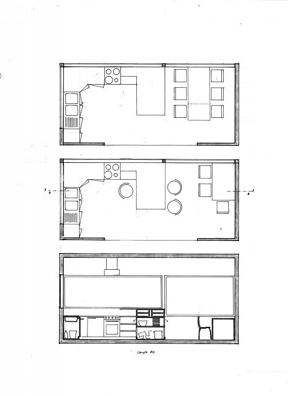 Dessin d'usage de cuisine réalisé avant le projet de maison-pliage.